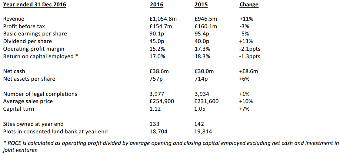 - We believe that the key factors which supported the positive market conditions in 2016 remain in place for 2017. The fundamental lack of supply in the UK housing market and the current strong demand from customers together provide a robust footing for the business.