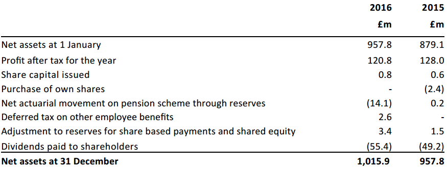 - Net assets per share as at 31 December 2016 were 757p (2015: 714p).