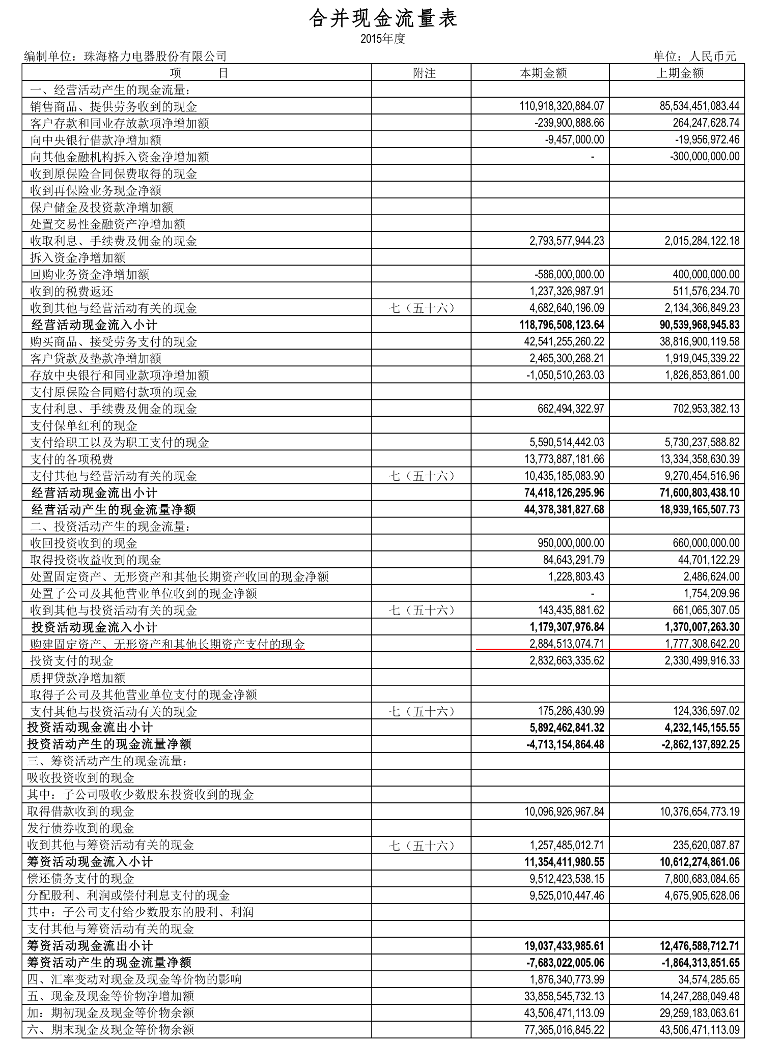 经营活动产生的现金流量净额 14,859,952,106.92 44,378,381,827.68