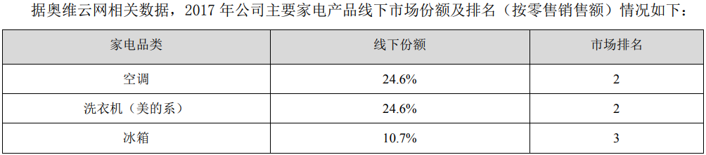 - 据中怡康市场数据,美的部分产品线下零售额市场占有率情况如下: