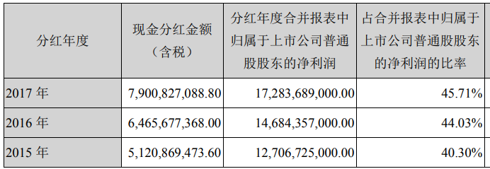 以公司现有总股本6,584,022,574 为基数,向全体股东每 10 股派发现金红利 12 元(含税)。