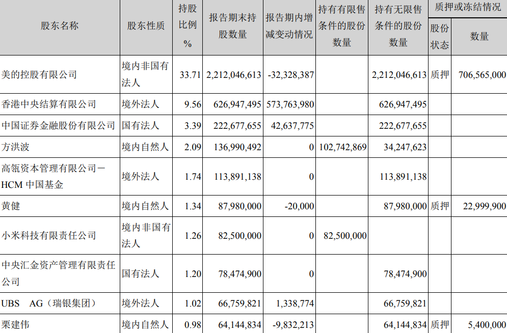 袁利群 境内自然人 1.41% 90,750,000 - 美的集团 (000333.SZ) 、 威灵控股 (00382.HK)、 小天鹅 (A: 000418.SZ;B:200418)
