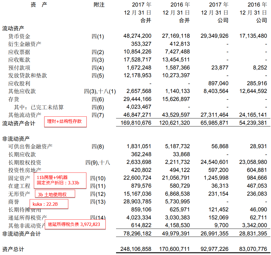 - 于 2016 年 12 月 31 日,以公允价值计量的可供出售金融资 产之成本为 2,956,118,000 元,主要为对 KUKA Aktiengesellschaft(以下简称”库卡集团”)的股 票投资。