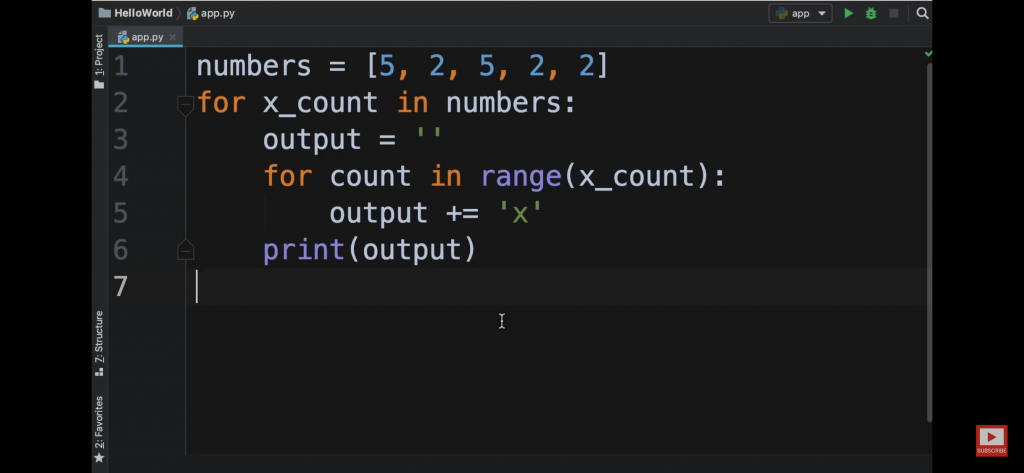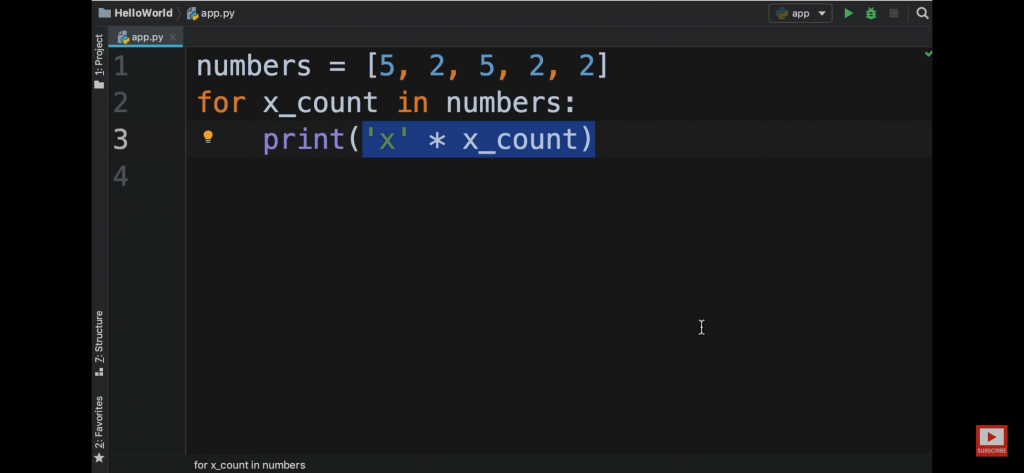 x=[5,2,5,2,2] for y in x: print( ‘x’*y )
