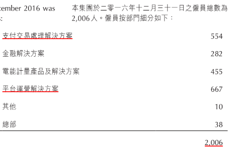 支付交易處理解決方案: 2017底,累計國內活躍商戶總數已達到250萬戶,全年交易額累計超過11,000億人民幣。