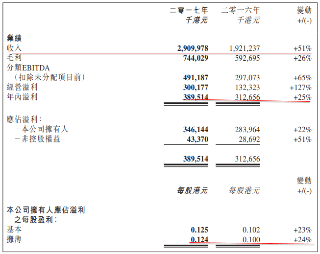2017業績公佈