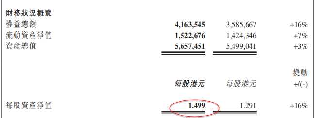 每股資產淨值 1.392; 1.291 +8%