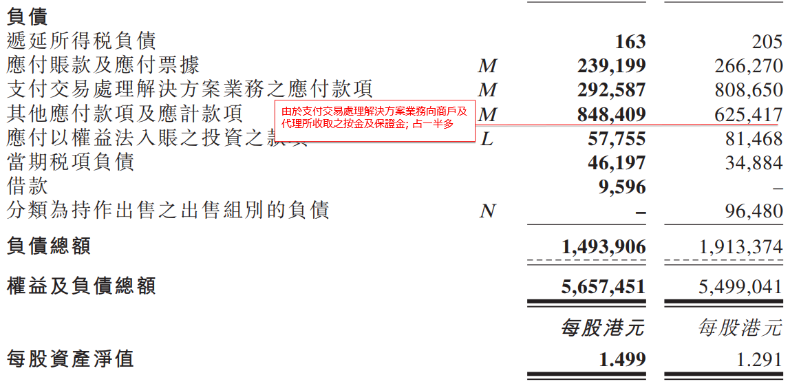 支付交易處理解決方案業務之應付款項 L 787,667 472,912 Other payables and accruals 其他應付款項及應計款項 L 646,400 467,030